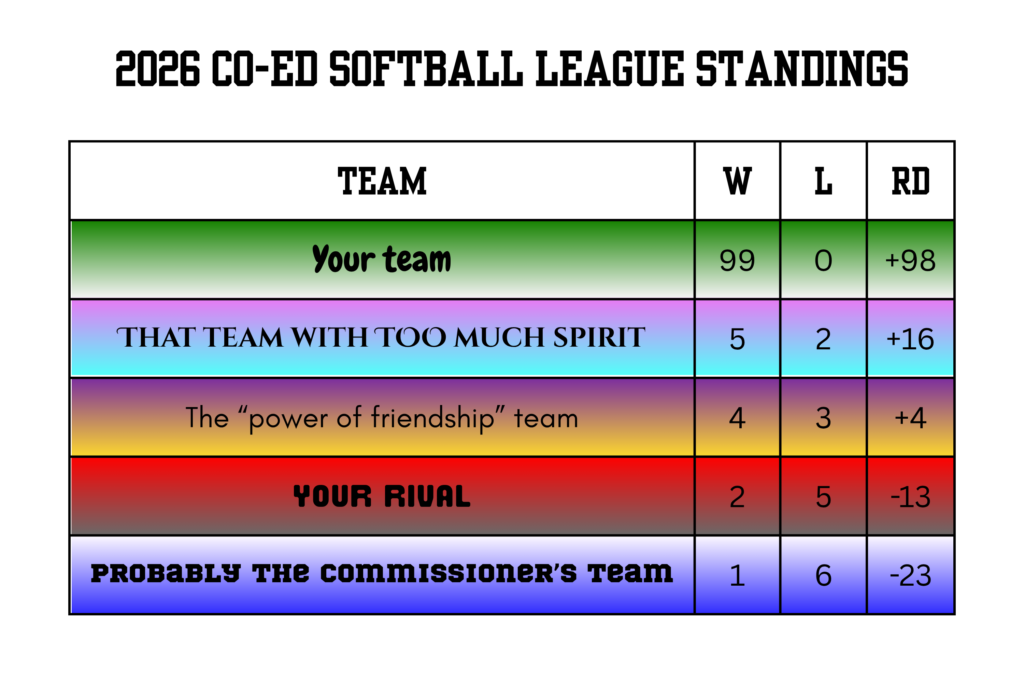 Softball League Standings and Recap